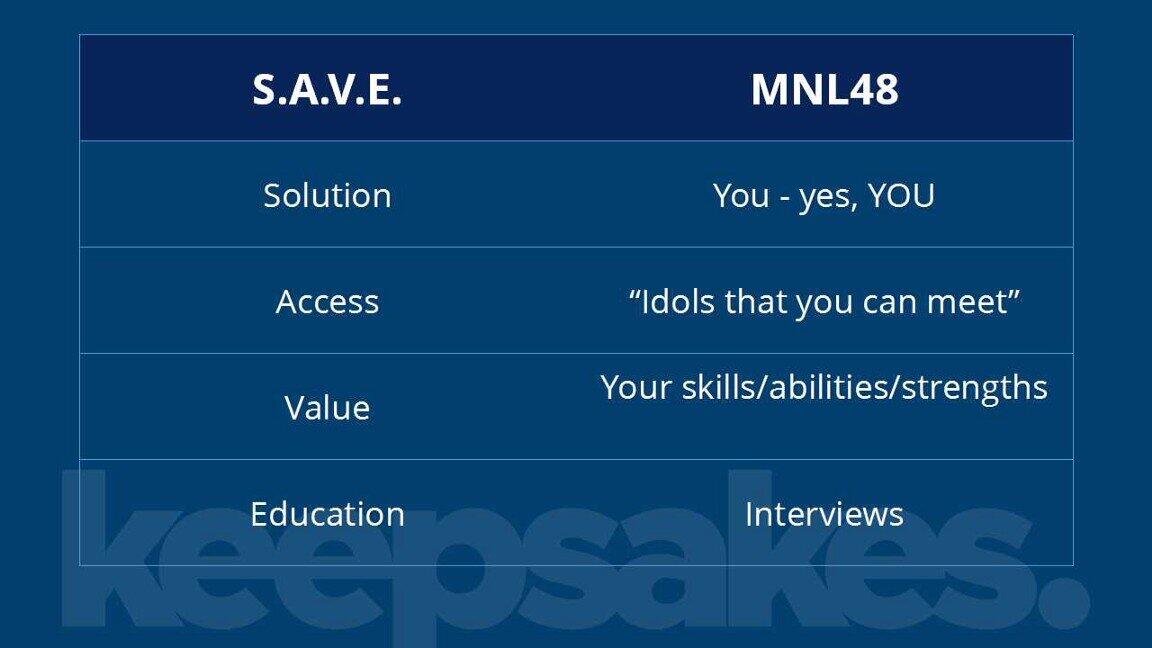 I can say that MNL48’s promotion is coursed through two channels — Television (through its partner ABS-CBN) and Online (via its website and Facebook).