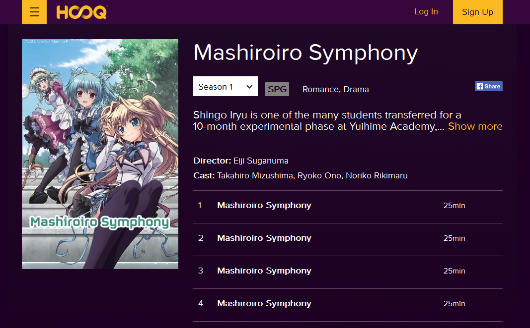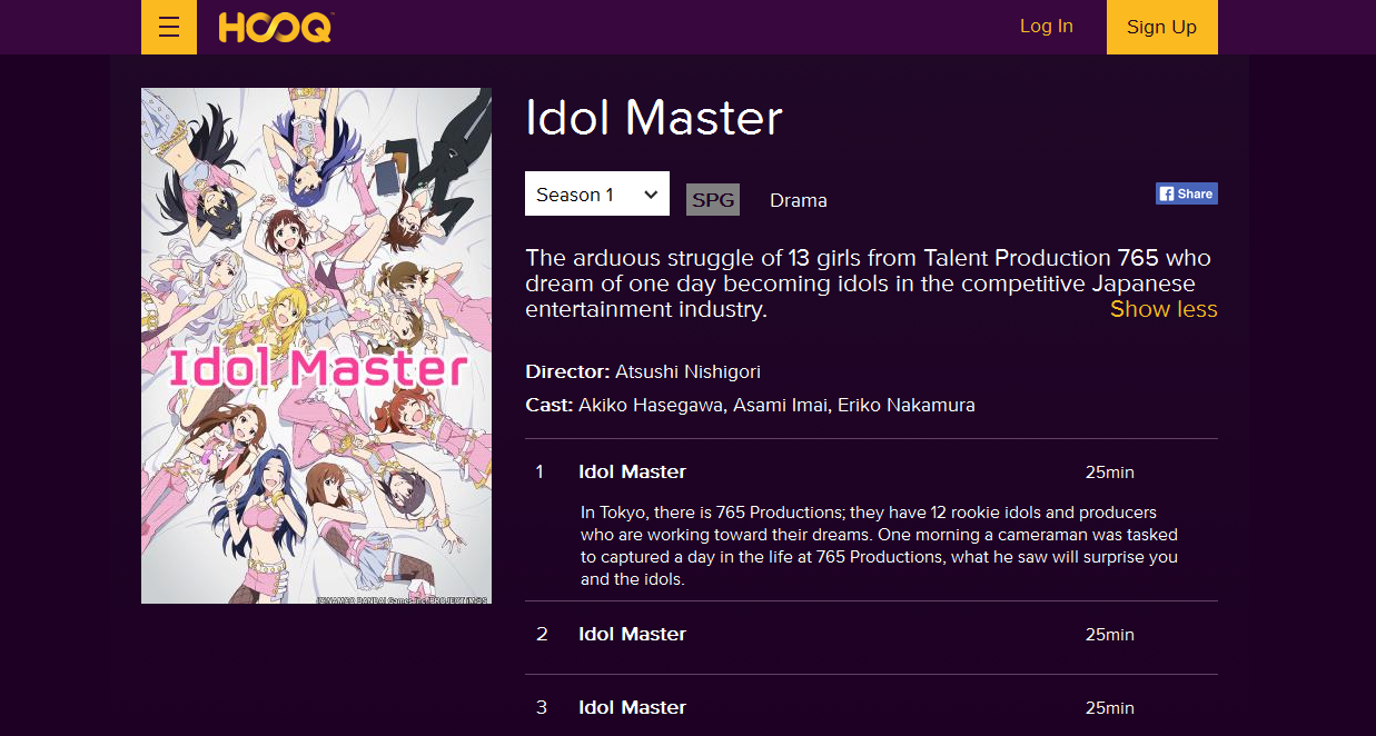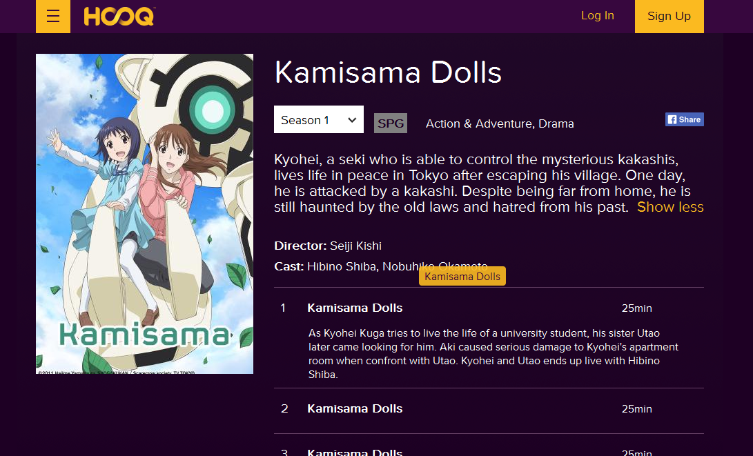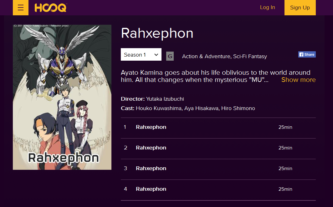 Screenshots of HOOQ’s catalogue with Aniplus content on its starting days.